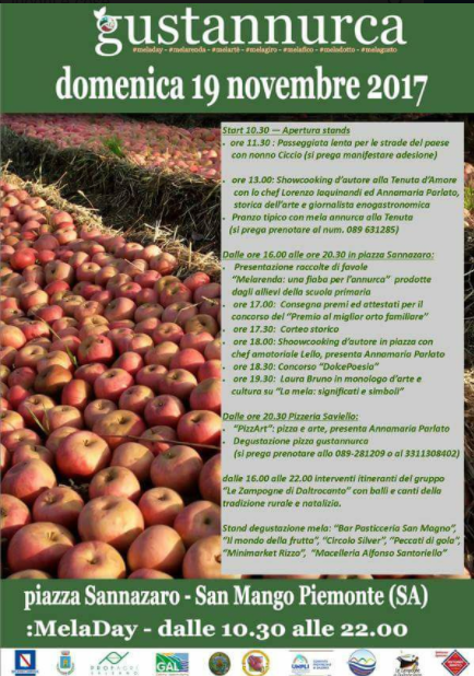 In provincia di Salerno, a San Mango Piemonte, Piazza Sannazzaro, il 19 novembre  dalle 10:30 alle ore 22:00 si svolgerà il MelaDay, iniziativa di ‘Gustannurca 2017′. Con una sola grande protagonista, la mela annurca.