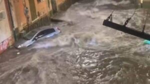 Nubifragio su Napoli, dopo la bomba d’acqua voragine in via Pietro Castellino