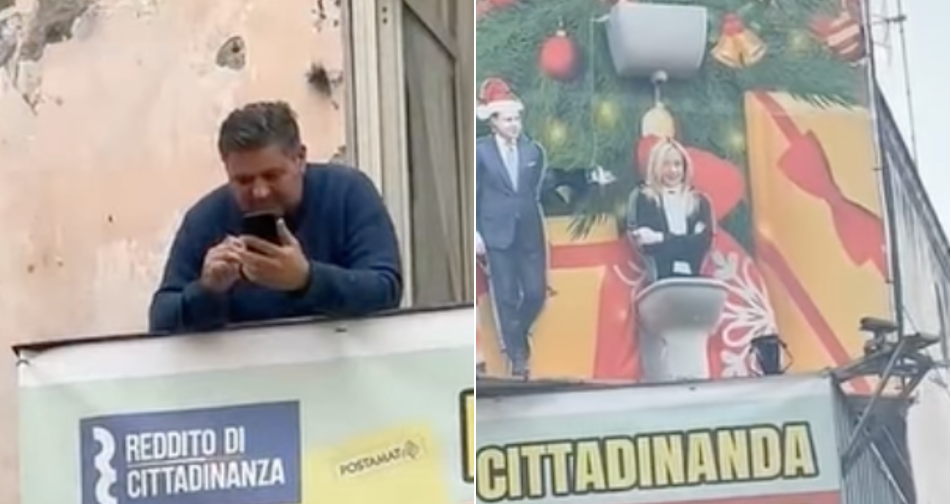 Meloni nel water al grido “Il reddito di cittadinanza non si tocca”, rimossa la ‘scultura’ delle polemiche