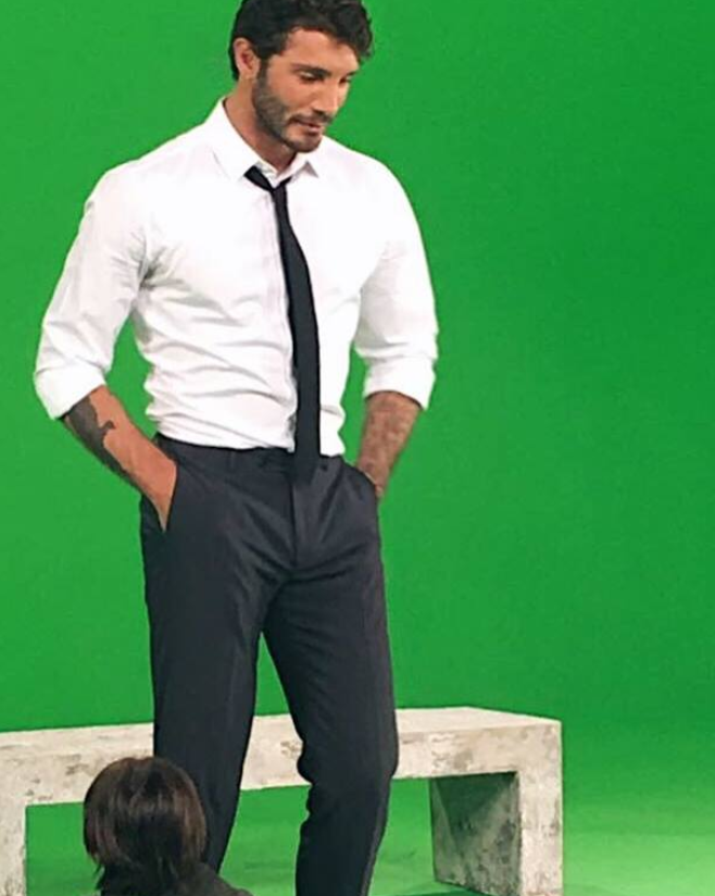 Stefano De Martino anche a lavoro è papà: la foto con Santiago fa il boom di like